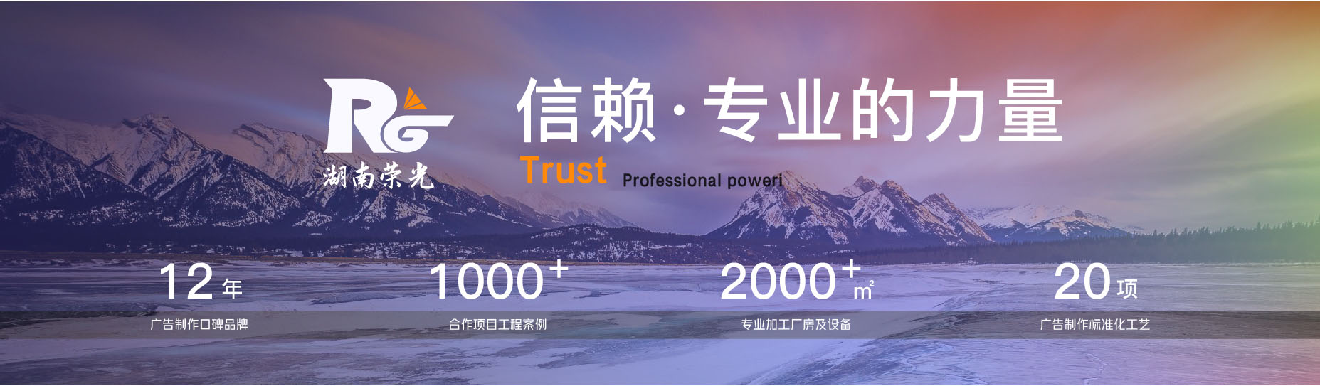 走進湖南榮光About Us湖南榮光公司是一家總部位于長沙的廣告公司,公司現有管理團隊技術骨干20余人,擁有專業的安裝隊伍及售前售后團隊、資深的文化墻設計、黨建文化設計和廣告標識設計團隊。現有廣告標識及發光字加工生產廠房2200平米,150平米標準化烤漆加工房。全自動發光字折彎機、雕刻機、激光切割機、平板UV設備等十余臺。同時具有強大的LED顯示屏供應鏈、為您企業的廣告投入,實現創新和快速反應,提供了有力保障。